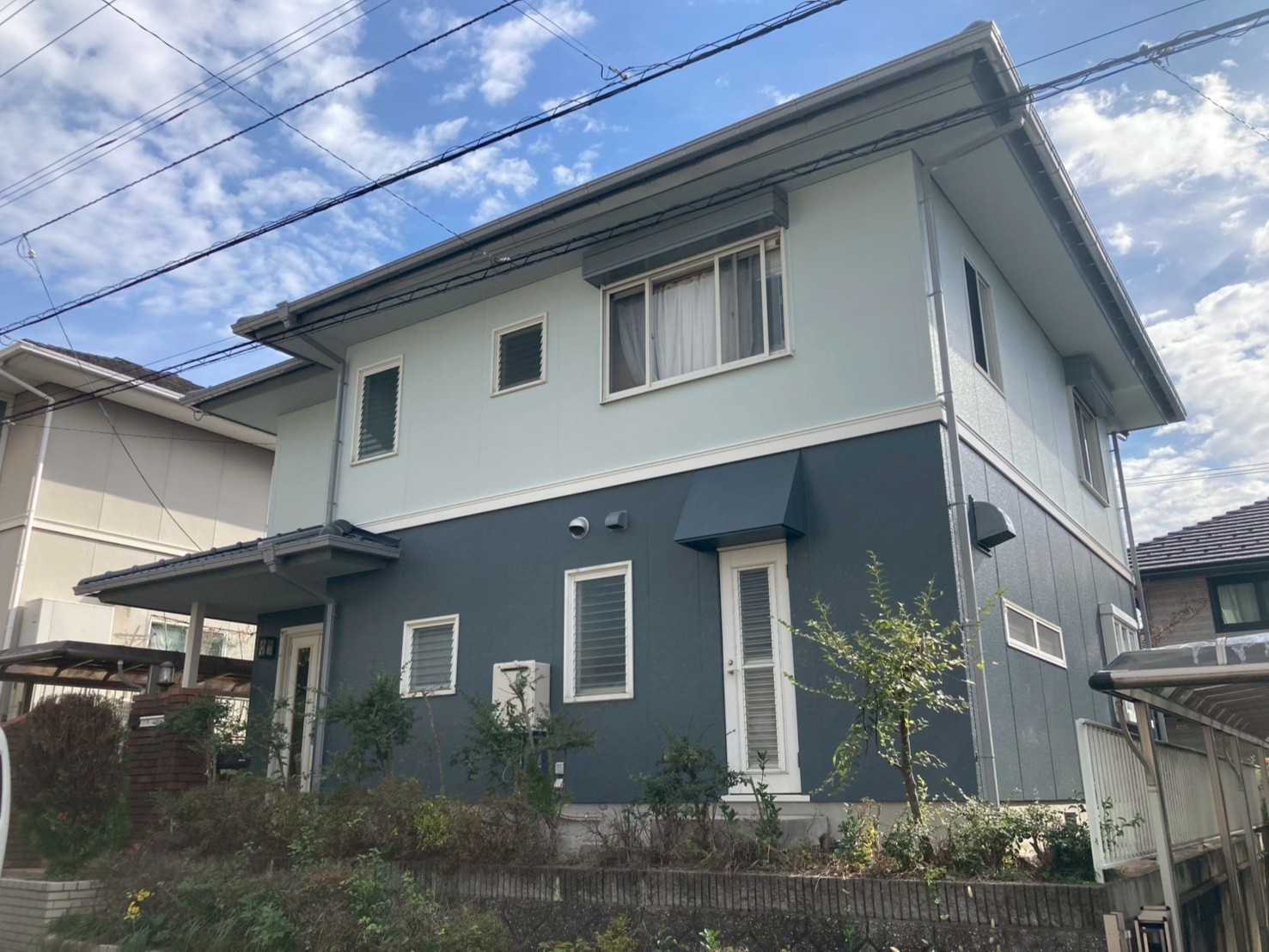 | 使用材料 | 外壁塗装 エスケー化研 スーパーセラタイトF お色:N-40 防水工事 |
